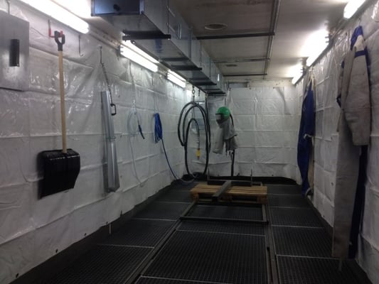 Unsere 6 Meter Strahlkabine ist seit Januar 2018 einsatzbereit. Die neue mit den Kabinenabmessung von 6,60 x 2,5 x 2,5 wird neben der MHG 160 Handstrahlkabine mit 1,30 x 1,1 x 1,1 und dem Strahlgut Glasperlen und Korunt im Bereich Reinigungsstrahlen eingesetzt: